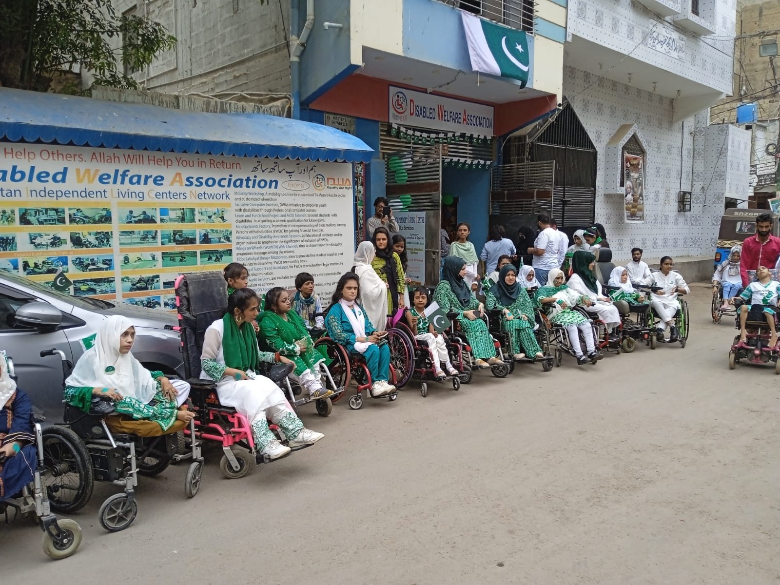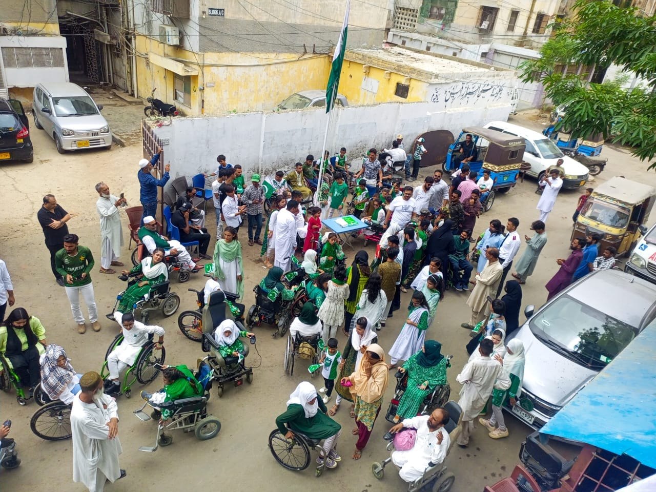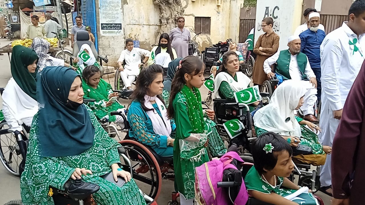 Disabled Welfare Association in collaboration with FK Foundation organized Flag Hosting & Cake Cutting Ceremony on the occasion of 14th August 2023 Independence Day of Pakistan. National Songs, Poems and Speeches performed by beneficiaries of our Organization.